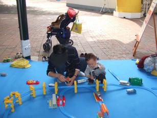今日はバアバ、パパ、私(ママ)、隼人の4人で豊島園に行った。 午後12時から閉園までいた。閉園はすごく早くてビックリ、17時か18時だったよ。 豊島園ってどうかなー、遊べるかなーって思ったら、本当に小さい子供におすすめ。 そんなに混んでないし、小さい子供でも乗れるものがわりとあって隼人もまだ1歳なのに とーっても喜んでいた。 その日はたまたまトミカのプラレールのイベントがやっていて、まずはプラレール遊びを やった。こういう遊びにばあばはいつでも積極的に参加して隼人と遊んでくれるんだ。 まだ隼人は小さいから次々と思うようには親も行動できないし、何かと時間がかかる。 だからお昼頃でかけて乗り物に5,6個乗ってご飯食べて。。。なんて感じで あっというまに閉園になっちゃったんだ。 私は絶叫マシーンはまったくだめで乗り物自体も高低動くものは苦手で遊園地へ行っても ほとんど乗れないんだ。だから私自身は子供が乗る乗り物に同乗してちょうどいいぐらい。 パパもそれほど乗り物はとくいじゃないんだけど、『トップスピーン』という結構 恐ろしい乗り物に乗ってみると急に言い出して挑戦。私は前でみてたんだけど、パパの 叫び声がよく聞こえて、おかしくて笑っちゃった。なんかパパって喜ばしてくれるんだよなー。 つぼにはいるというか。。。 驚いたのが隼人がまったく乗り物を怖がらなかったこと。中に2メートルぐらい回転しながら 浮く乗り物やメリーゴーランドなどに乗せてもずーとニコニコしていた。きっとママとは 乗り物に関しては似なかったんだね。 車のハンドルもって運転してる姿なんて本当にかわいい。こんな笑顔で楽しんでいるのをみて、 きてよかったーと思った。ばあばありがとう!!ばあばの提案だったんだ。 そして最後にばあば、パパ、隼人の3人でトーマスに乗った。ばあばが乗ってくれて嬉しかった。 歳をとっているのにいつもこうやっていっしょに乗り物にのったりして遊んでくれる。 私も歳をとってもこういう明るい人でいたいなー。
