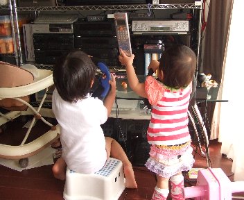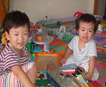 1日1時間、はやりんはテレビゲームをやっていいことになっている。やっているのはF1カーレスゲーム。ハンドルが2つあるので横から邪魔が。。。りーちゃんもハンドルをぐるぐる。。。時にはやりんのハンドルもいっしょにつかんでぐるぐる。。。。はやりん、運転は好きみたいで鈴鹿を完走。私もたまに挑戦するけど私は完走はまだ1度もないよ。たまには実家にも帰ります。。『日帰り』実家で経営しているお店をちらり。。。。お店での二人。。今日は袋いっぱいにりーちゃんの服をもらった私が実家にあんまり帰らないものだからりーちゃんも母になれなくて母の顔を見るとすぐ泣いていたから母もよく新聞で顔を隠しながら部屋の中を移動していたその光景が私にはおかしかったんだけど母はなかれるからつらかったみたい。でもようやく母を見ても泣かなくなったものだから母もかわいいかわいいの連発で最近はしょっちゅう、洋服を買ってくれるし、今回はおんぶをしてあげていた。りーちゃん、まだ歩かないけど実家の階段は一人であがることができる。 りーちゃんの最近の流行。。。。洋服を肩にかけたり首に巻くこと。。。。おもしろい 容器から容器に水をうつすこと毎回びちゃびちゃ。最後は流した水の上におすわり。。。でもやめないわーー。そしてはやりん。最近やや反抗期。反抗期なのかなとこっちが思うぐらいだからはやりんの今までの人生の中ではかなりビックな反抗期かも。しょっちゅう喉がかわくはやりんのためにパパがドリンクホルダーをつけてくれた。こんな絵が書けるようになった。ついこの間までぐるぐるのまるしか書いてなかったのになーーー。車のドアが縦長の四角で車の後ろのいろんな四角はサンドイッチなんだって。最近、写真を撮るときにさりげなくポーズとります朝食の時いい笑顔だねーーー。かわいい毎日プール道具持参。昨日やっと幼稚園でプールに入れた。幼稚園でのプールに疲れたのか、昨日帰ってきてまもなくトイレで眠っていたいまさらカーズじゃなくてもと母は言いたいが本人がこれーというからしょうがない。。。なんといってもやっぱり友達と遊ぶのが一番たのすぃーお友達にもらった水塗り絵。。。毎日必ず1回、すごく集中してやってます。おもちゃよりも塗り絵に最近食いつき中。やっぱりママは'BOO'の服が好きだなーーー転んだらこのズボン痛そうだけど、私はこういうちょっとしたコリがあるデザインがすきだわーーー。template-まりもん