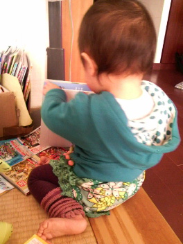 りりちゃんておもちゃより本をぱらぱらめっくっているのが
