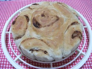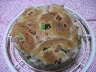 今日は、晴れ時々曇り。最高気温24度、最低気温17度の予報。今日は、晴れ時々曇り。今日は、ショッピングセンターヘ。帰ってから、スポーツ公園にウォーキングへ。今回は、涼しくなってきたからかウォーキングもジョギングしている人も前回より増えた感じ。そのあと、ゆっくり読書です(^^♪☆ソーセージ&チンゲン菜のちぎりパン☆★薄力粉 100g★強力粉 100g★ドライイースト 1.0g★砂糖 小2★塩麹 適宜★ぬるま湯 150cc◎マーガリン 小1◎魚肉ソーセージ 1本◎チンゲン菜 適宜◎マヨネーズ 適宜★をよく混ぜ、マーガリンを少しずついれて良く捏ねる。生地をタッパーに入れて発酵させ、約2倍になり指を刺してもどってこなかったら、一次発酵終了。ガス抜きをして、丸めてベンチタイム約10分。生地を長方形に伸ばして、カツトしたソーセージとチンゲン菜をちらしクルクル巻き6等分にしてケーキ型に並べて二次発酵。2倍になったら、190度で約13分焼いて出来上がり~♪ ソーセージ&チンゲン菜のちぎりパン 色合いも綺麗にやけました~美味しいお菓子 いかが☆彡【送料無料】★アップル&ドライフルーツのパイ(フルーツ姫)