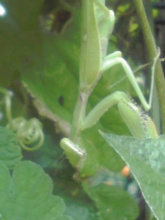 夏バテなのかな?ふらふらと40度以上の道路をふらふらと歩いていたカマキリをお兄ちゃんが連れてきました。アーチに3匹めのカマキリが住みつきました。にほんブログ村