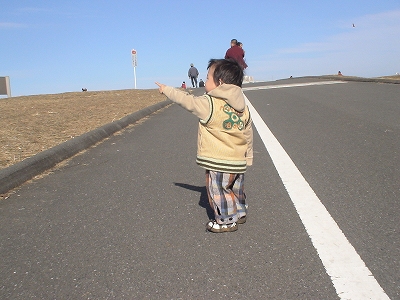 土曜は雨降りでどこにも出掛けられなかったので日曜はちょっと離れたところにある大きな公園へ行って来ました。滑り台で遊んだり歩き回ったりチビ郎、とっても楽しそうでした☆嬉しそうな顔を見てるとこの顔が見たいからまた連れて来よう♪って思いますね。追い回すこっちはヘトヘトだけど。。。「あっ!あっ!」上がってるタコが気になってなかなか公園に辿り着きません滑り台がお気に召したようで何度も何度も催促パパとママが交代で滑りました最近の滑り台はローラーが付いててお尻が痛い~(>_