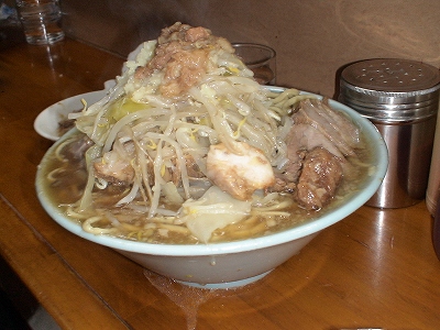水疱瘡の子供を実家に預けてまで夫婦で行って来てしまいました。そう。【マルジ】へリベンジ!リベンジは前回と同じ都内某店。前回行ったときは、あのボリュームに圧倒されゆっくり味わうことがまるでできなかったので今度は前のヘマを生かし(9/23の日記参照)パパ→麺増し無し(でも肉増し)私→麺少なめでも2人とも懲りずにまた野菜・油・にんにく増し(無料)を注文。さぁ、ばっちこーい!!待つこと7、8分。出てきたのはこんな感じ「・・・・・」やばくね?内心そう思った。この画像はパパの「普通・肉増し」のだけど私のもかなりのボリューム。とりあえずゴンッッッグッ食べ始めた2人。2人とも無言。食べる。食べる。食べる。チラッとパパの顔を見る。険しい顔。やっぱり何かと闘っている顔。そして聞いてみるどーせ、ギブなんでしょ?何も答えないパパ。そうだよね。私達、リベンジに来てるんだ。そんな簡単にギブできないよね!!私も頑張った。「ギブ・・・」そう言ってしまいそうな自分と闘った。食べる。食べる。食べる。そして2人とも見事完食わーい わーいかなりキツくて死にそうだったけど今回は2人とも頑張りました。頑張りましたって言うとまた罰ゲームみたいだけど今回は前回よりまだ気持ちの余裕があってちゃんと「味わう」ことができました。やっぱり嫌いじゃないね、マルジ♪独特の美味しさ。ギトギト・コッテコテだけどきっとまた行きたくなるだろうな。パパの話によるとマルジ通の方々はいろんな店舗のを食べ歩き汁まで飲んじゃうそう。汁まで飲むのは止めた方がいい気がします(笑)そうそう。パパは注文のとき「野菜増し、にんにく油 増し増し」なんてマルジ通ぶって注文してたよ。今度は私も「増し増し」とか言っちゃうよ!(笑)また数ヵ月後(しばらくはいいや)マルジへ行ったらレポします☆