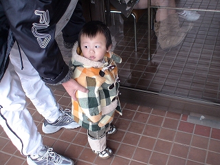 チビ郎と迎える2度目の元旦。まぁチビ郎が目覚めたとき母は居なかったわけだけど(笑)(前の日記参照)私が帰ったときは義母に遊んでもらっててご機嫌さんでした。そして義母の作ってくれたおせち&お雑煮をたらふく食べパパの実家を出発。今度は私の家族と合流。まずはお墓参り。うちの実家は毎年元旦にお墓参りをするのです。チビ郎は好きに動き回るので追いかけるじぃじは大変です早速着てます、コート(笑)お墓参りのあとはどっかの(忘れた)ショッピングセンターへ。チビ郎が生まれる前は毎年元旦にみんなで映画を見ていたのだけどチビ郎が生まれてからは去年・今年とただの買い物ツアーになっています。私はチビ郎の福袋を買ったので見るだけでいいや~と思っていたのですが妹がチビ郎にお年玉で1万までならなんか買っていいよキャーーーーッ マジっすか??じゃあ、お言葉に甘えて♪と、物色していたらデニム&ダンガリーを扱うお店発見!これを買ってもらいました。↓ちょうどセールが始まって30%OFFだったのでちゃんと1万円以内で納まりましたよ(笑)更に妹は父に靴を母にコートを買ってあげてました。よっ!お金持ち!持つべきものは高給取りの妹です。ホントにありがとう☆大晦日からほとんど睡眠を取らず元旦はあちこち動き回ったので私はバテバテ。夜は実家のソファでネットをしながらお風呂の順番待ちをしている間に爆睡。化粧すら落としてなかったよ。。。でもみんな揃って楽しい元旦を過ごせて良かったです!