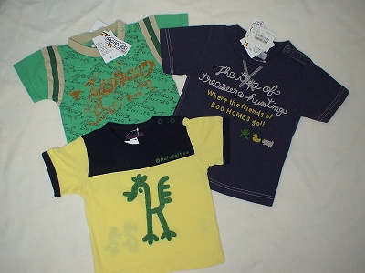 先日発売されたチチさんのBOO春夏物福袋のネタバレです。90サイズ 男の子トップスは上2枚がブーホームズ下がナチュブ。ボトムスは2枚ともバックアレイ。満足満足!もう1個欲しいぐらい。他の方のネタバレ見ても今回のチチさんの福袋はいい感じ?あぁ、でも洋服増え過ぎです。何人兄弟?ってぐらい洋服が溢れてます。それでもトキメク福袋が発売されれば迷わず買っちゃうんだろうなぁ。Tシャツ2枚のアップ。刺繍が可愛い~後ろも可愛いです☆
