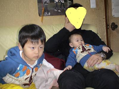 大晦日から元旦にかけては(例年通り)パパの実家で過ごしました。男連中、K-1に夢中。3人男兄弟とその嫁&子供達でお義母さんの美味しい手料理を囲みワイワイ賑やかな大晦日でしたいとこのNちゃんとチビ郎。Nちゃんも大きくなったなぁこっちの2ショットは2人とも泣きべそそうそう。手土産にフランスの焼き菓子を持って行ったのだけどまぁるいお菓子を見てケーキだと勘違いしたチビ郎が「ロウソク、ふぅ~したい」と言い出した。これはケーキじゃないからロウソクは無いんだよと言い聞かせていると「あるある!」と義母。あぁ、この間Nちゃんが誕生日だったからそのときのロウソクが残ってるのか~ってお義母さん。それ仏壇用。さすがお義母さん。私の笑いの隠れ師匠です。今年もついて行きます(笑)