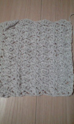 この前、毛糸創庫camelさんの福袋セットにあった白い毛糸。8号かぎ針で松編みしたスワッチのシュクジュウ。シュクジュウ前(2模様=16目×10段)シュクジュウ後( 2.5模様=20目×10段) 段数は変化ありませんでした。が、目数はちょっと縮んで変わりましたよ。シュクジュウは、arauという洗濯用液体せっけんを使って手で押し洗いしました。すすぎはためすすぎ2回、柔軟剤は使ってません。ウチで使ってるのは新しく出たローズゼラニウム&イランイランのアラウです。【ポイント10倍対象商品】arau.洗濯用せっけん ローズゼラニウム&イランイラン・ライム・ラベン...価格:525円(税込、送料別)シュクジュウでの縮みを考慮して、計算し直してマーガレットを編み始めました。親子お揃いを作ってプレゼントしようかと思って(飽きたら子供ちゃんの分だけにしちゃうかも・・・)まずはパパっと作れそうな子供ちゃんの分から。 背中央から左右に向かって編みます。今、片袖分編み終わり、また背中央から反対側に向かって編んでる所。これで、長い方の辺にボタンを3つほど付けて、ボタン留めして袖にします。ボタン外せばショールにもひざかけにも、くしゅっと首に巻いてマフラーにも。イチカワさん、福袋以降も頑張ってますね。先日出た、ダイヤモンド毛糸の88円の毛糸。「ダイヤシュクレ」。持ち越し在庫大処分!現品限り。【毛糸】【ダイヤモンド】ダイヤシュクレ価格:88円(税込、送料別)出てすぐに気付いてたんだけど、何色をいくつ買おう?同梱どうしよう?なんて悩んでる間にぐんぐん売れちゃって、1番欲しかった紫も、次に欲しかったピンクもあっという間に売り切れちゃいました。今まだ赤だけ残ってますが、私、福袋にダイヤシュクレの赤が入ってたのでこれ以上赤はいらないんです・・・紫、買いたかったな~。送料払っても安いですよ。太めの糸なので編み終わるの早そうです。子供のジャンパースカートとか帽子とか毛糸のパンツとか、元気な感じになりそうだし、大人でもニットスカートとかあったかそう。ウエアに派手色はキビシイって人だったらバッグにするともこもこで可愛いかも。余り毛糸はシュシュにしたら可愛いと思います。