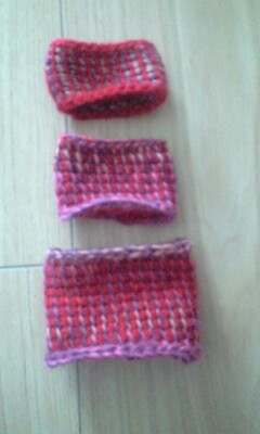 sunnyちゃんのサックコート、身頃と両袖編めました。今スチームあててる所で、形が落ち着いたらはぎ合わせ、襟、袖ぐり、裾の処理します。 なのでスチーム待ちのうちに針休め?に紫色のシュシュと緑色のカバー編みました。両方かぎ針で糸はアウトレット毛糸さんの福袋。 紫色シュシュは8号針、長編みと鎖1目のひたすら繰り返し。 緑色カバーは輪に長編み3目、鎖3目を4回繰り返して引き絞り四角を作り、次の段で鎖3目の中に長編み2目、鎖3目、長編み2目を入れて大きくしていきました。 途中、長編みに飽きるので方眼編みも入れてあります。気分で決めてます。 糸を使い切りたかったので、100gぐらいある糸を編み、最後はだいたい細編み8目ごとぐらいに鎖3目のピコット編みを入れてアクセントつけました。 カバーは出しっぱなしになってる糸巻きにでもかぶせようかと思います。 明日はサックコートはぎ合わせ。