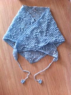 三角ショール、編み上がりました。 底辺130cm弱、高さ50cmの作品を違う糸で編んだのでもう少し大きくなったかな?使用糸:毛糸バザーで買った「ミンクルモヘア」の水色 25g×7玉使用針:かぎ針6号編み図:リネン・コットンでつくるナチュラルニットより【送料無料】リネン・コットンでつくるナチュラルニット価格:1,155円(税込、送料別)繊細な縁編みがトルコオヤっぽい感じで結構好きです。ガーベラな所をちょっとアップで。 まだスチーム当ててないのでぼこぼこしてますが。茨城の地震被害について。我が家の被害ですが、ずっと下を向いていたので全然気づきませんでしたが、気付いた部分だけでも天井ボードが数か所、ヒビが入ってました。台所もリビングも・・・旦那ちゃんが、仕事がちょっと落ち着いたら直してくれるって言ってました。ずっとガソリンが手に入らないし、皮膚が敏感なのか外に出たり玄関で喋るだけで首から上と背中の肩甲骨あたりまでがヒリヒリしてしまってたのでほとんど外に出ない生活をしてました。最近になって通院しなくちゃいけない日が来て車で出かけましたが、近所の車のディーラーさんはショーウインドーのガラスが全部割れてベニヤ板を貼っていたり、お墓はドミノみたいに全部倒れていたり、瓦屋根の家はほとんどがブルーシートをかけていたり、アスファルトがヒビだらけになって穴が開いていたり、このあたりもそれなりに被害が出てたみたいです。話しを聞いたら、瓦が地震で割れて在庫がないらしく、ブルーシートまで在庫切れでどこにも売ってなかったそうです。ウチは瓦屋根ではないので屋根は大丈夫でしたが、お隣さんは道路に「落下物注意」と書いた物を家を囲むように置いてました。仕事で水戸に行った旦那ちゃんは、「コンクリでできてる橋とかはそのままの高さで、他の地面が全部下がっちゃってたから、その段差の補修をあちこちでやっていた。道もガッタガタ。ブロック塀はことごとく倒れ、視界が広がって街が広く感じた」と言ってました。鹿島に親戚がいる方と話したら、「鹿島では神社の鳥居がバッタリと倒れていた」との事。有名な神社かどうかまでは聞きませんでしたが、神社関係の建造物って結構お金かけてしっかり作ってるようなイメージを勝手に持っていたのでビックリしました。茨城は野菜とか水とかは報道するけど被害についてはなかなか報道してもらえませんが、津波以外でも被害は(比べればとっても小さな事だけど)出てます。食品類はだいぶ揃って来ました。納豆とかは1家族2パックまで、とか制限はありますが、並ばなくても買えるようになりました。ガソリンスタンドも、早く閉店する所が多いですが、先週のような渋滞はもうなさそうです。ご近所さんは「4時間並んでハイオクしかなくて、軽自動車にハイオク入れちゃった」と話してました。しかし常磐線。取手から先が40%ぐらいしか走ってないらしく、旦那ちゃんの通勤はとっても大変そうです。ご近所さんも都内まで通勤されてる方がいて、朝のバス停で嘆きあったそうです。たぶん取手までしか電車が動いてなかった時に取手駅までタクシーを相乗りした方じゃないかな。節電のためにも安全運行のためにも仕方ないけど、せめて通勤、通学時間だけでも増やして欲しいな~。昼間は少なくてもいいから。水。もう大丈夫そうなんですかね。値は下がって来てるみたいですね。私1人は危なくても飲んでもいいやと、その代わり被災地に水のボトル送って頂戴、と思ってますが、サニ子が心配で。もう1歳になったので乳児ではないのですが、体重が7.5kgしかないので標準的な生後6ヵ月児ぐらいの大きさなんです。紙おむつはSサイズ。服は新生児から着てる50~70cmの兼用オール。ミルクだけで生きてるわけではないけど、まだミルクも飲んでるし、おかゆだって水で炊くし、地震でおっぱいはほとんど止まったし、麦茶を飲むにしても水道水で作ってたので。薬は体重当たりで計算して処方されるし、7.5kgの6ヵ月児は危険で7.5kgの1歳児は安全、とは限らないんじゃないかと心配してます。市役所では母子手帳提示で0歳児にはペットボトルの水を無料配布してるし、イトーヨーカドーでも母子手帳提示で優先販売してくれるみたいだけど、ついこの前1歳になったばかりの、まだ「6,7ヶ月ぐらいですか?」と声をかけられるほど小さなサニ子は入手不可能です。旦那ちゃんが頑張って見つけてくれた水を大事にサニ子に飲ませようと思います。なくなるまでにきれいな水になっていますように。