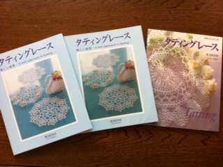 タティングレース、私は今年の年始に発売された「毛糸だま2011春号」で存在を知って調べてるうちにまんまとハマったクチですが、他にもタティングにハマりそうでハマれない方もいるかもしれないので一緒にハマらせよう企画。タティングレースのおすすめ本。編み本で言う所の「基礎本」にあたるような本を1つに絞って買いました。おすすめは「聖光院有彩」さんのタティングレース。2冊ありますが、著者が同じなので違うのはイラストの感じとか、載ってる作品とか、全体のページ数ぐらい。 左から、朝日新聞出版、雄鶏社、NHK出版。ちなみに朝日新聞出版(昔、雄鶏社で出してたヤツの復刻なのでまったく同じ内容です)の「新しい世界」の方がページ数多いです。コレ【送料無料】タティングレース価格:1,680円(税込、送料別)中身もちょっとご紹介。 糸玉の糸を緑、シャトルの糸をピンクにしてるので、「作り目を移す」というのがどういう仕組みなのか?をわかりやすく写真、イラストで解説。太ーいロープでもやってくれてるので、正直小学生でも理解できるんじゃないかって感じのわかりやすさ。 NHK出版の方はコレ。【送料無料】タティングレース価格:1,680円(税込、送料別)こちらも中身をチラっと。 上の本とほぼ同じ内容の事を解説してるページです。糸の色を変えてるのとか、解説方法は同じ。シャトルが違うぐらいかな。上のはクロバーのクラシックを使ってて、NHKの方はアンティークっぽい絵柄の付いたシャトル使ってる。 ちょっと高度なテクニックまで載ってる所も同じです。迷ってもどっち買っても正解だから好きな方買っちゃって。貧乏性な人には全体のページ数の多い朝日新聞出版の方をとりあえずおすすめかな。基礎本の次は、作品集。編み物で言う所の編み図の本。大きな物はまだ作れない、でも出来上がった物は持ち歩いて披露したい。そんなニーズにこたえてくれる文化出版局の「タティングレースの小さなアクセサリー」【送料無料】タティングレースの小さなアクセサリー価格:1,365円(税込、送料別)こちらの本にも一応基礎的な事が書いてあるけど、ある程度知ってる人が久しぶりにやる時に「どうだったっけ?」って見るには良い。って程度の噛み砕き具合。なので、まだわからんちんな人にとってはわかりにくいかも。聖光院さんの本にも作品はたくさん出てるけど、華麗なドイリーが多めなので、もっと小さくてイマドキの生活に地に足付いて使える若い子にも向いてる作品が多いのは文化出版局の方です。クラシックな付け襟や縁編みなんかも出てます。これも中身チラ見せ。 ピアス、チョーカーなど普段でも使えそうな可愛いのがいっぱい。お花のバリエーションもいくつかあるので、違うお花の模様に替えてアレンジもできそう。