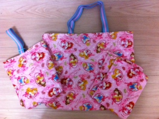 今日はサニ子の1歳の誕生日。初の誕生日祝いなのに、ガソリンも食料も十分調達できる状態ではないので質素になっちゃってますが。プレゼントなんかも全然買ってませんでしたが。家族が怪我なくこの日を迎えられた事を幸運に思って。大事に過ごしたいと思います。車をなるべく動かさないように、今日は天気予報で雨だったので、昨日のうちにチャリでケーキ屋さんまで走って来ました。ハピ子は外出大好きなので、チャリに乗せるのは重たいのに「一緒に行く~!!」と。ずっと外出も控えてて可愛そうだったし、頑張ってハピ子を乗せて坂道を行きました。ウチからチャリで行ける距離のケーキ屋さんは不二家。中ではパティシエさんが「たんじょうびおめでとう サニ子ちゃん」とチョコペンで書いてくれてて、ガラス越しに見てたハピ子が大興奮。昨日のお風呂の中では「ケーキ作ってるの~。白い、丸いケーキ。『サニ子ちゃん』って書いてんの~。」とパティシエ気取りでおままごとしてました。たまには色んなお仕事を目で見るのも大事だし良い経験したなぁと(見ただけだけど)思いました。それだけでも坂道をチャリで行った甲斐がありました。そのケーキは今日食べます。夕ご飯も大したもの作れないけど・・・で。もうすぐハピ子の入園式ですよ。のんびり構えてたら震災。停電するか、とか断水した、とかで慌てたので、余震に揺られながら入園グッズを作りました。材料は先に買ってあったし、ちょっとしたノーション類は手芸店並みにいろいろ持ってるので出掛けなくても作れました。入園グッズ 左から上履き入れ、手提げ袋、コップ袋(2枚) 着替え袋どちらも「ディズニープリンセス」の柄。上履き入れと手提げはキルティング使用。生地は京都カナリヤさんで買いました。ハピ子が自分で選んだので気に行ってくれてるみたい。2010新柄入荷!キャラクターキルト プリンセスGRQ7957 1A11価格:252円(税込、送料別)2010新柄入荷!キャラクターコットン プリンセス-8 GR7957 1A11価格:126円(税込、送料別)キルティングは裏の生地も薄い柄になってるので内布なくても可愛いです。私はキルティングの布端の始末がジグザグしかできないので内布張っちゃったけど。内布は手芸ナカムラさんのスイーツ柄。もうないみたいだけど、こんな感じの白ベース。綿プリント生地オフ白系価格:609円(税込、送料別)アクリル紐もナカムラさんの大カセ。45005アクリルひも(中)・大カセピンク価格:525円(税込、送料別)持ち手は手芸ギンガムさんで処分価格だったアクリルテープ。1m&Dカン1個&アイロン接着名前テープ2個のセットで60円しませんでした。もうないみたい。作らなくちゃいけないのはこれだけなので、旦那ちゃんが休みの時に2回に分けてさっさと縫っちゃいました。名前をまだ付けてないので、綿テープか麻テープにでも書いてステッチ用の糸で縫いつけようかと思ってます。型紙や作り方はありません。手提げは園の指定サイズになるように、上履き入れやコップ袋は物が入る大きさで子供でも出し入れしやすい余裕を持って作っただけです。地震でまだ心穏やかではないけど、なるべく落ち着けるように、編み物も再開しました。地震前から編んでたネットバッグは作り終わって、今は三角ショールを編んでます。追記。近所の回転寿司屋でお持ち帰りして、みんなでお寿司食べました。