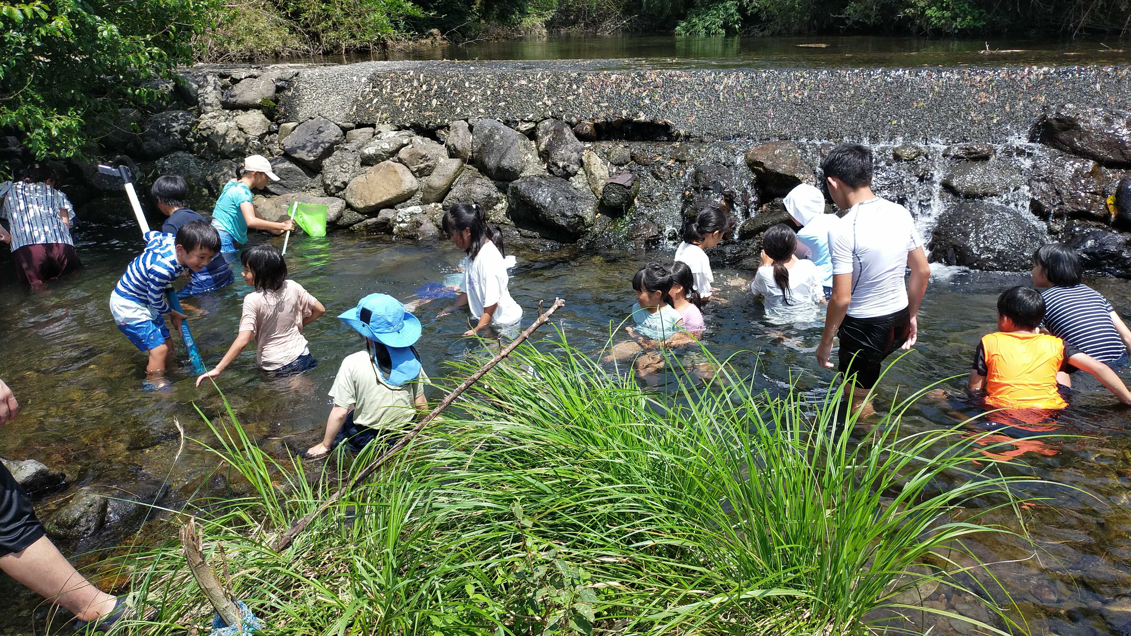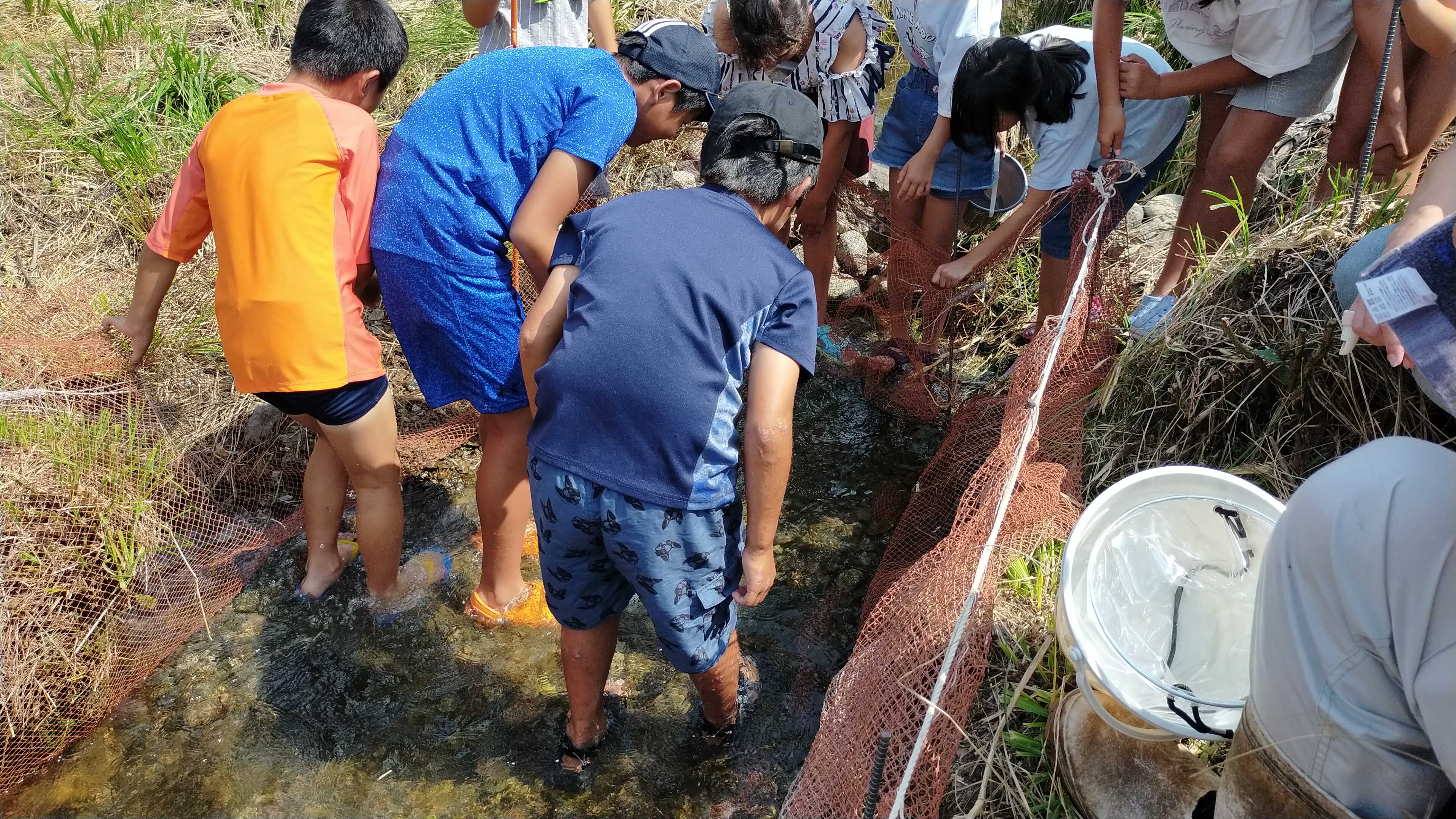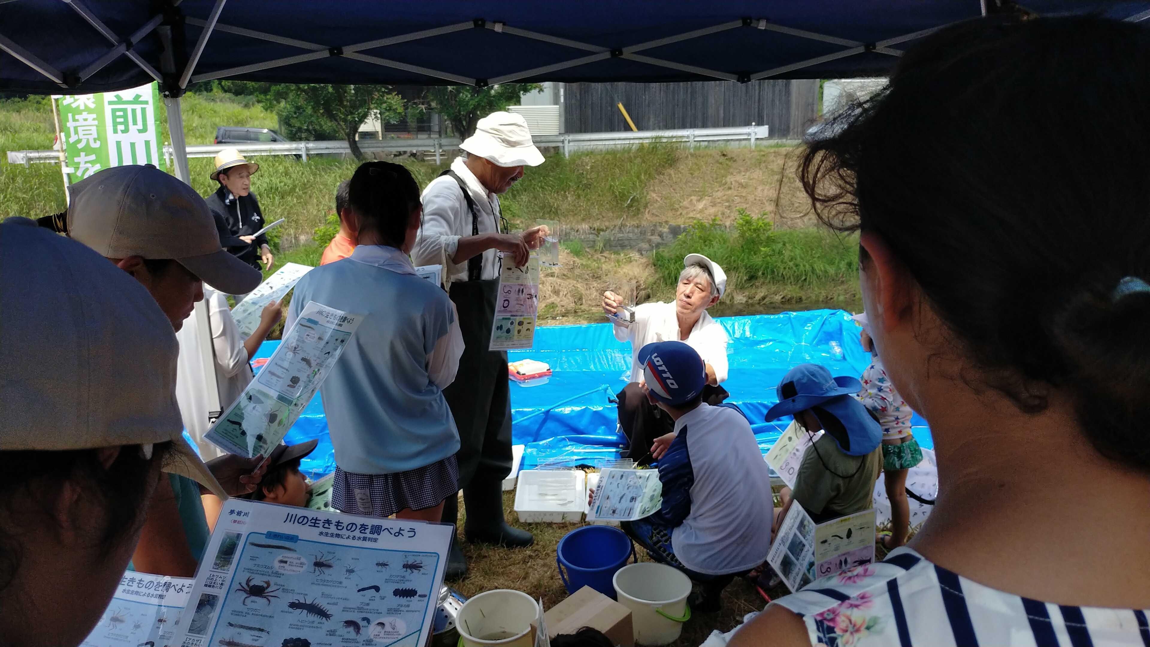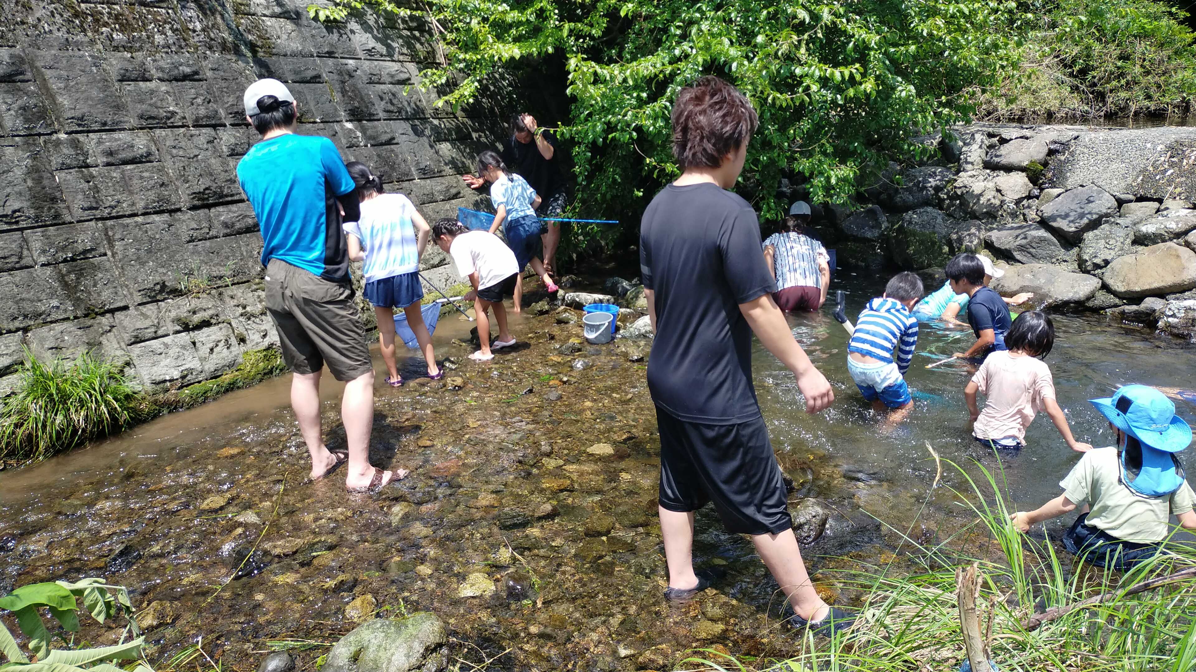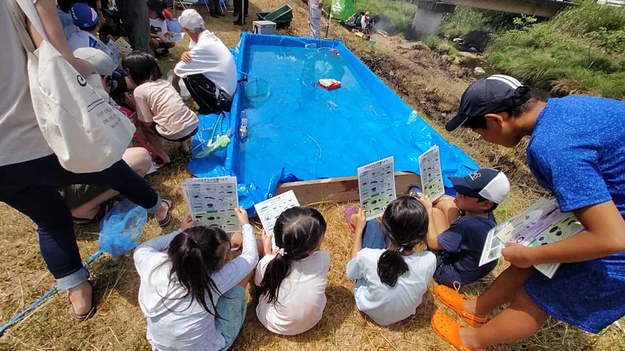 鮎つかみの待ち時間に、住んでいる生き物調査!