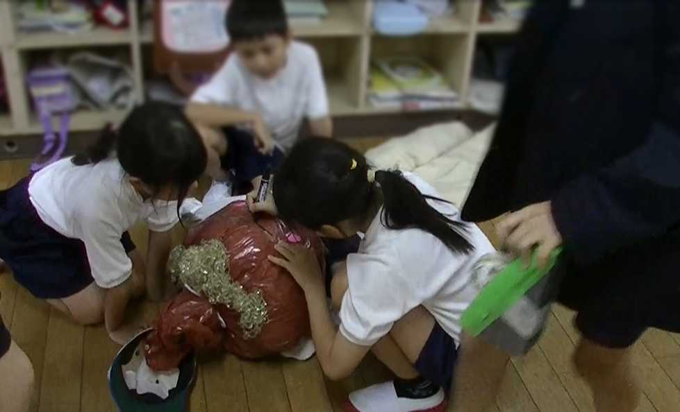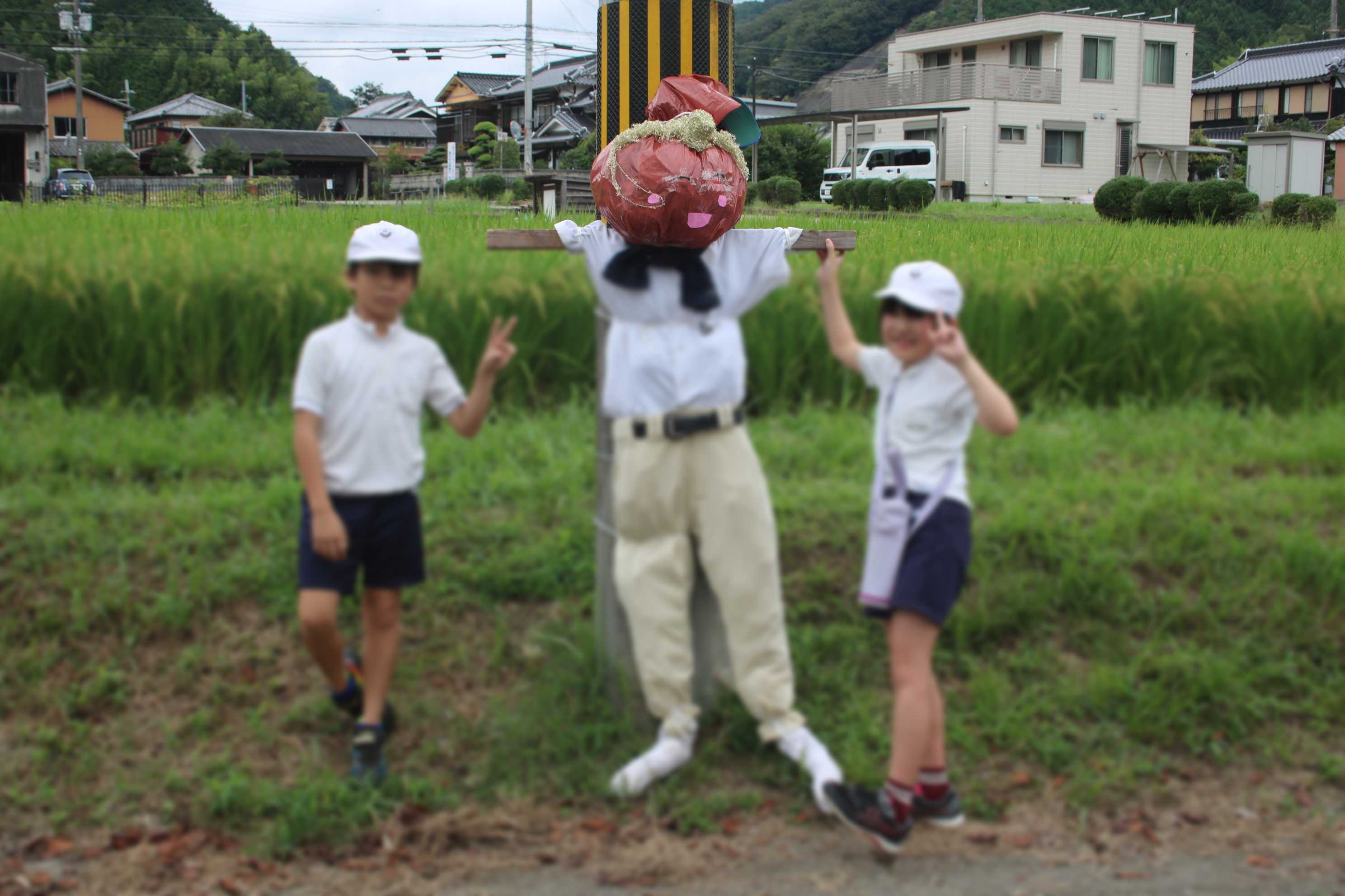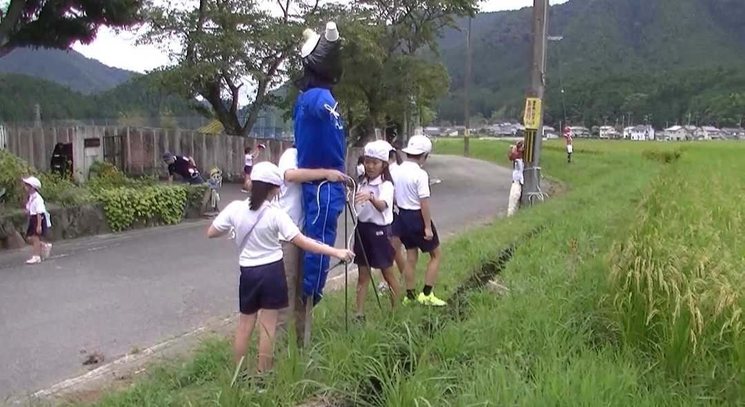 3年生と4年生が 「かかしづくり」 に
