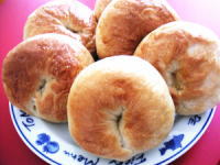 果てさて何度目になるだろうか・・ベーグル作り。今回は、上手く作れるだろうかぁ???今までになく、生地のまとまりも良さそうだし、今度こそ大成功?しかぁ~し・・最後の形成から茹でるまで、ここが難関でした。ベーグルの形に整えるのに時間が掛かりすぎ・・最初に形成したものが膨らみすぎたのかしら?どうも、生地がブヨブヨしている気がして、沸騰させた鍋に入れるのも一苦労。途中で投げ出したくなるのを我慢しながら、8個完成!!綺麗な形に仕上がったのは、唯一1コでした・・・。味は・・美味しいですよぉぉ~♪“モモばぁさん”レシピお借りしましたぁ!!いつもお世話になっております。ありがとうございます!★豆腐クリームチーズ★超ヘルシー!お豆腐のクリームチーズです。100gで238kcalダイエット中でもヘルシーベーグルと楽しめそう!!★ベーグルスライサー★こんなの欲しかった~☆ベーグルを切るときいつもビクビクしながら手の上でナイフを入れていましたよ。これなら、まっすぐキレイに切れそうです!!ついでに・・ベーグル形作るグッズもあったら嬉しいなぁ~♪【 * プレーンベーグル * 】材 料◆ 8個分(モモばぁさんレシピ)・強力粉....600g・ブラウンシュガ-....大さじ2・ぬるま湯....2カップ・ドライイースト....大さじ1・塩....小さじ2・砂糖....大さじ2・卵白....1コ作り方(1) ボウルにキビ砂糖を入れて、ぬるま湯を加えながらかき混ぜて溶かします。溶けたところで、イーストと塩を加えて、また、よく混ぜ合わせます。(2) (1)に強力粉500gを加えて木ベラで混ぜ合わせて、ボウルの中を綺麗にしながら生地をまとめ上げます。このときの生地の固さは、耳たぶくらいの固さにしましょう。柔らかくなりすぎたら粉を加えて調節。(3) 台の上に強力粉をふって、の生地を取り出し、はじめはスケッパー等で、生地をまとめながら10分くらいしっかりとコネます。(4) 全体がまとまってきたら篶生地を8つに分けて、それぞれを15cm×10cmくらいの楕円状にのばします。そしてこれを横長に置いて、手前から三つ折にしながら15cmくらいの棒状になるようにのばしましょう。この時、生地のグルテンか強いので、のばしても縮みやすいから、交互にのばすようにします。(5) 棒状にのばした生地の一端を少しつぶして、軽く水をつけて一ひねりしながら両端を張り合わせてリング状にします。これを綺麗に円の形に整えればベーグル形の完成。(6) 天板の上にオーブンシートをひいて、その上に乾いたふきんをかけて、常温で25分、生地を軽く発酵。(7) お鍋にたっぷりのお湯を沸かして、砂糖大さじ2を加えて。その中にで作ったベーグルを両面1分ずつ茹でます。ここで茹でることで、表面の発酵はストップするので、もうこれ以上大きくなりません。茹で終わって取り出したら、ふきんで水気を切ります。(8) 天板に茹でたベーグルを乗せ、少量の水でといた卵白を表面に塗って、220度のオーブンで20分間焼きます。これで焼きあがれば、美味しいベーグルの出来上がり!コメントベーグルの形作るの難しい!もっともっと美味しく作りたぁい!