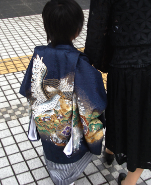行ったのは今月上旬。休みを取って遠路遥々実家帰省。自宅近くの神社で細々しようかと思ったら、父も母もその日仕事で、無理との事。なんだよ~、せっかくの記念なのに、家族4人かよ。・・・・。東京帰ろ。と、決めたのが、10月下旬。慌ててお母さんに電話して、OK貰ったら、次は写真館予約して、仕事休めるように調整して、新幹線の予約して・・・。ものすごい勢いで、全部決めました。仕事帰りにそのまま新幹線に駆け込んで、そんな日に限って、のぞみ大混雑。大変でした。そして、本番。すごい雨(TロT)せっかくの晴れ舞台が・・・。写真いっぱい取る気だったのに、全然取れないし、次男は途中で寝ちゃうしで、がっくし。それでも、長男の立派な和服姿が見れて大満足。後姿の長男とおかあさんお母さんがお祝いのケーキとかお料理とか準備してくれていて、とても感謝しています。子供たちはいとこに会えて嬉しそうだし、帰って来てよかった。翌日憎らしいほどいい天気でした。寒かったけど。。。。。。。この日は、神奈川県にあるこどものくにへいとこと一緒に遊びに行きました。牧場でぱしゃり。色々あったけど、楽しい帰省になりました。と、喜んでいたら、翌日から次男、水疱瘡(涙)」 ̄|○会社を結構休みました。辛かった・・・。ふーーーーーぅ。(もう直りました)。