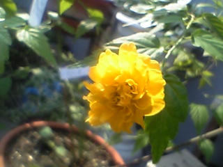 まだ肌寒い春先、長男がおじいちゃんと行きつけの園芸店に行って買った来た山吹の苗。「ママになんかお土産に買っていくか?」というじーじに「じゃ、これ」と、長男が選んだのが、山吹でした。って、いうか、マンションだし、地植えで出来ないし、止めろよ、父(汗)。なんていうか、育て方解んないし(切実)。長男からのお土産?プレゼントだし、大切にしたいのだけど、本当に育て方がわからなくて…。図書館に行っても見つけられず、ネットで調べても解らず、未だに八重山吹をどうやって育てたらいいのか分からないまま。春先に1本ビユンと新芽が伸びていたけど、なんか、バランスが悪いので、ばっさりカット。ついでに、適当に枝をバッサリ。すると、最近たくさん花芽をつけて、咲き出しました。えええええ????山吹って、春の花のはずなのに…。今咲いてるって事は、来年咲かないのかな?それとも、咲き終わったらまた剪定した方かいいのかな…?謎だ。でもきれい。