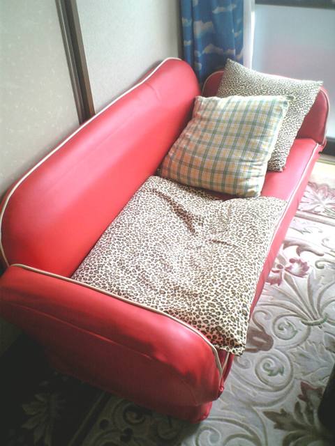 本日、朝から構えておりましたなんたって大きな台風が来るって言うじゃない雨戸はどうしようか・・・実家の母を迎えに行こうかなどなど・・・・いよいよか って頃・・・・・晴れ間が・・・あれ台風は何処に行っちゃったんでしょう・・・・その後はいいお天気だったので、洗濯物をしっかりと干しました被害も出てるって言うのに・・・大変申し訳ありませんm(_ _)mホッとした一日になりました。そこでお嬢の部屋をお片づけ「捨てたいぃぃ~」と言ってたソファーをGET致しましてですね私の部屋へのプチ引越しですちょっと和室には・・・・ って思ったけど、捨てるなんてもったいないでも、居眠り心地はいいんですよようこそ私の部屋へって感じでしょうかいやいや、今日は片付けをしたり、お嬢と話しをしたり結構・・・かなり、楽しい一日になったんです明日は実家へGOです