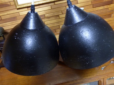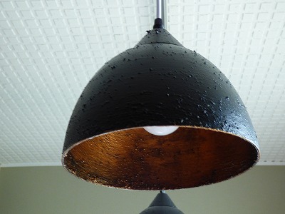 今日もブログをみてくださってありがとうございます照明リメイクのつづきです。 ここまでで何となくいい感じになってきています。が・・・外側のざらざらも気になるし、まだ黒一色で塗っただけなのも気にる。 色が。 夜の灯りの下で見るとこんなですよ・・・ ”つや消し黒” とは? え? 光ってるじゃん、、、 ここからどうにか修正していきます。 8.黒を斑にしたいので、ぼかしを入れるためにチャコールを上から塗りました。この工程はいらないかもしれませんが・・・試行錯誤しながら、これもやってみたという記録です。 全体に塗ります。乾く前に塗れたウエスでポンポンと叩く感じに拭きます。 おっ!何となくいい感じになってきたかも。 石灰のざらざらが少しいい雰囲気になったと思います。 翌日です。 うん!いいかも。 ん・・・近くでみると外側全体に散りばめられた石灰のチクチクが気になる・・・そもそも、塗料に石灰を混ぜる時点で石灰の粒が大きかったので、もう少し細かくすり潰すとか工夫が必要だったかもしれません。極端に角が立ってチクチクしてますね・・・ なのでチクチクを取ります。 9.外側のざらざらを思いっきり粗めのサンドペーパー(60~80番)で擦り落とします。 残すところと、擦り落とすところをメリハリをつけた方がいいかもしれません。 真っ平らにしてしまわず、極端な凸凹を無くす感じでやりました。 気持ち悪いですね(笑) 削った粉をきれいに拭き取ります。 アップにするとこんな風になっています。 下地の色も出てきたり面白い。 プラスチックだったなんて誰も思わないところまでになりました。 10.色が落ちすぎたので、もう一回軽~く上から黒を塗りました。 キレイに塗らず、擦れる程度に塗ってます。 縁のコッパーも手直し。 トゲトゲの感じがなくなって、よかった。 作業はまだつづきます。【照明をリメイク ペイントでアイアン風に その3】へ! いつもポチっとありがとうございます。ブログ更新の励みになっています。 にほんブログ村人気ブログランキングへ