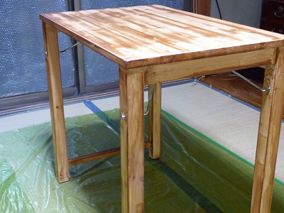 今日もブログをみてくださってありがとうございます せっかく甥っ子にペイントを頼まれたのに小汚くなった折りたたみ机のつづきです。 こんなになっちゃって・・・最初、なんで??って思って塗料が悪いのかと思っちゃっていました。塗料のせいではなくて、ラッカーがちゃんと剥がれていなかったんです。 なんじゃこりゃ・・・になったステインを剥がします。 ステインを塗ってあるのでラッカーが剥がれていないところが分かりやすくなっています。 丁寧に丁寧に剥がしていきます。 こんだけちゃんと剥がしたら大丈夫だろ!ってほどかなり時間がかかりました。 失敗したステインがきれいに剥がれました。 ステインを塗ります。前回の失敗は、ステインのせいではなかったのですが今回は、色も変えたかったのでステインを変えてました。 和信 ネオステイン 【オーク】です。 色を塗る前にあれやこれやで叩いたりガリガリしたり傷をつけました。 さ、リベンジ リベンジ。ステインを塗ります。 (´Д`)ハァ… ?? またしても こりゃダメだ。 もう、ホントしつこいぐらいラッカーがちゃんと塗られていて逆に言えば、品質がしっかりしているということなんですが・・・ これでもかってほどサンダー掛けたのになぁ。 ショックというより・・・ えーーーこれでもダメなの?? ラッカー強っ。 これが自分の机だったらもう諦めてたかも。 あーーーもうーーー今から剥がしたい。やり直したい。 でもこれが日曜の夜だったのでまた作業が来週の週末までできないんですよ。 会社休んで作業したいーーー週末まで待ち遠しすぎる。 仕方ないです。来週まで我慢です(TεT) 今日もありがとうございました。 いつもポチッとありがとうございます。励みになっています♥にほんブログ村 手作り・DIY ブログランキングへ 人気ブログランキングへ