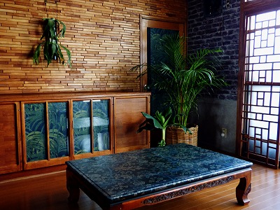 アンナフレンチの壁紙でリメイクしたテーブルも置いてみました。