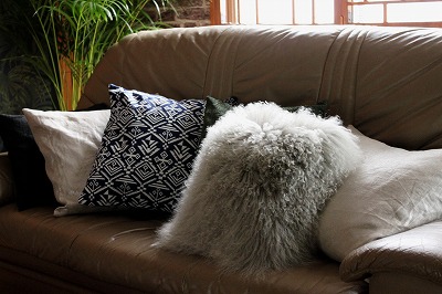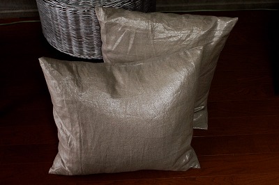 採寸もせず、もともとのクッションカバーをあてて切って縫ったので