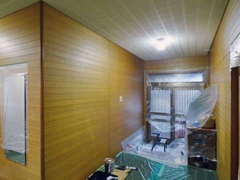 建具に貼っておいた養生シート(マスカーシート)も伸ばします。