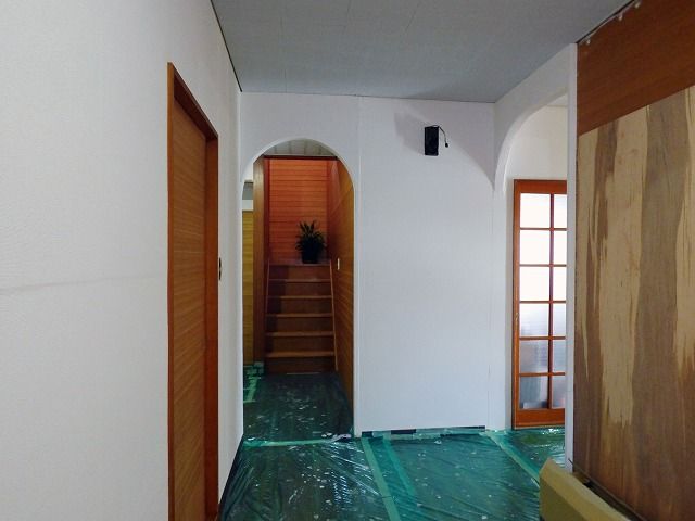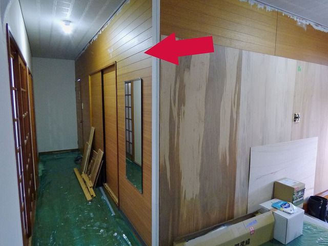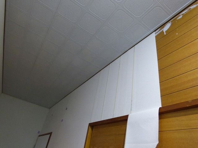 壁紙は余っているので、見えるところはつづけて貼りたかったのですが