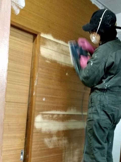 やっぱり、サンダーかけてから貼ったら仕上がりがきれい~!