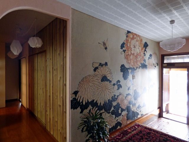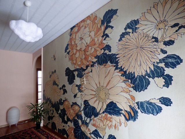 引き戸にはずっと使ってみたかった夏水組の襖紙を貼りました。