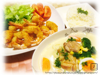 (*・ω・)ノ~☆コンバンワ♪ 先週は上着要らずってくらい暖かい日が多くてとても過ごしやすかったですね♪今週はどうかなー、、、 またヒンヤリな日がやってきそうな予感です 我が家の1週間のばんごUPしまぁす <12月08日>鶏のから揚げほうれん草のお浸し豚汁ごはん ★ <12月09日>鰹のたたき根菜のキンピラ豚ニラ玉豆腐とそぼろのあったかスープごはん “豆腐とそぼろのあったかスープ”TVで紹介されていたメニューです簡単で美味しそうだったので作ってみたのですが、、、簡単で美味しかったです(そのまんまw)初め濃い(色的に)かな??と思ったのですが、 全然そんな事なくてお豆腐のお陰で意外とあっさり頂けました レシピはコチラ≪材料(4人分)≫充てん絹ごし豆腐(300~350g)---2丁鶏ひき肉---300gかつおだし---1リットル砂糖---大さじ4酒---大さじ2みりん---大さじ2しょうゆ---大さじ4片栗粉(倍量の水で溶く)---大さじ2ショウガ絞り汁---適量 ≪作り方≫ 1鶏ひき肉を鍋に入れ、火をかける前にほぐす。2鍋にかつおだし、酒、みりん、を加え火にかける。3鶏ひき肉に火が通ったところでアクを取り、砂糖、 塩を加え、最後に水で溶いた片栗粉を加える。4豆腐を薄くそぎ切りにしながら鍋に入れていく。5豆腐があったかくなる位、ひと煮立ちしたら、 すりおろしたショウガの絞り汁をかけて完成。★ <12月10日>豚のしょうが焼き&サラダじゃがきのこのガーリック炒め柚子胡椒そうめんキムチごはん “柚子胡椒そうめん”こちらもTVで紹介されていたメニューです! めちゃめちゃ簡単かつシンプルな味付けなので色んな料理に合います 柚子胡椒がピリリときいてお気に入り <スープ(1人分)>顆粒の鶏ガラスープの素---小さじ2塩---小さじ1/2ゆず胡椒---小さじ1/2白ゴマ---小さじ1どんぶりに<スープ>を入れ、お湯を注ぎ、茹でたそうめんとお好みのトッピングを載せたら出来上がり♪ ★ <12月11日>ハヤシライス&半熟ゆで卵コーンスープサラダ久しぶりにハヤシライス食べましたヽ(・∀・)ノ この材料だといつもたいていカレーになっちゃうのですが(旦那がカレー狂の為)、この日は渋る旦那をそそのかして(?) 強行突破しましたヾ(*ΦωΦ)ノ ヒャッホゥうまかった━━━━━。゚(゚´Д`゚)゚。━━━━━ ★ <12月12日>“ハヤシでミートソースパスタ”前日のハヤシライスが微妙に残ったので、 トマト缶を加えてミートソース(風?)にしました。アレンジという名の手抜きです"p(-ω-〃) ★ <12月14日>野菜とエビのかき揚うどん炊き込みご飯豆腐サラダ かき揚にはうどん♪な我が家。。。 豪快に乗っけてかき揚げうどんにして頂きました サックサクで美味しかったのですが、、、 にんじんが上あごに刺さりました(涙)どんだけ(´゚ω゚):;*:;ブッサクサクかき揚のコツはコチラφ(・ω・★)んん~炭水化物満載な上に揚げ物、、、ファット率高ッッ[壁]ω;) 最後までお付き合いありがとうございましたぁ゚+。:.゚(嬉´Д`嬉)゚.:。+゚(o'ω'o)ノ ♪
