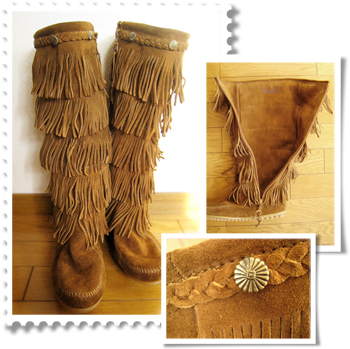 こんにちはッ(・∀・)ノ冬到来?!ってくらい寒くなったかと思えば、 半袖でもいいくらい暖かくなったり…最近変な気候ですねーもう11月なんでぼちぼち冬物登場させました。 ★★★ 「ミネトンカ 5レイヤーフリンジブーツ」 今年はブーツ履く機会あんまりないかなーっと思ったのですが 我慢できず買ってしまいました…_| ̄|○・゚・でも、これ買ってよかっためちゃんこ可愛いです♪ペタンコで歩きやすいのはもちろん、 筒が広くてファスナー使わなくても脱ぎ履きが出来るので超楽です ダスティーブラウンのUS8です。 普段は23.5cm~24cmでUS7愛用ですが、 「甲幅細め」とのレビューが多かったので ワンサイズ大きい物を購入しました。ワンサイズ上げて正解!ピッタリでした。 インソールは用意していたけど、残念ながら入らず 背が低い為(足が短いとも言う)インソール入れないと 歩いたとき筒口が膝裏に当たっちゃうのが難点です(T▽T) しばらく履いていたら馴染んで広がるので入るようになるかな… こちらで購入 ★★★ 「コサージュ付きカットソー」以前、おつけものちゃんがブログに載せてて 可愛いなぁっ♪と密かにチェックしていたお品。 しかし、送料1000円というハードルの高さに手を出せずにいたら…数日後、、、なんと!半額になってました 妊婦に嬉しいBIGサイズでお腹もお尻もすっぽり~ヽ(*´∀`)ノ まだまだ余裕ありこれなら臨月まで着れます 丈も長めでペチを重ねたらワンピっぽくも着れそうですね!ただ、、、袖が長い…(;´▽`A``腕が短い?w (お腹ポッコリ~ただいま6ヶ月。すでに体重6キロ増です_| ̄|○・゚・)素材は薄手のニットっぽくてほんのり暖かい でも綿だから全然チクチクしないし、柔らかくて着心地最高です♪お花のコサージュも可愛いよぉ(〃▽〃)こりゃヘビロテだな、、イロチ買いすればよかったぁヾ(o´Д`)ノおつけものちゃんセレクトはツボすぎてヤヴァイっす(・´艸`・)ブッ;゙.、 ★★★ 「ファー付きモッズコート」 夏の終わり頃、一目惚れで早々にgetした今一番のお気に入り と言いつつまだ出番なし(T▽T)早く着たいぞ~このフリフリデカポケットにやられました(*´ω`*)キュン♪ ★裏地はド派手なフラワープリント 袖を曲げてチラ見せすると可愛いです♪★ フードは取り外し可能でノーカラーにもなっちゃう カジュアルから大人っぽく上品なイメージにヾ(o´∀`)ノ♪ こちらのブラックです 以上。最近のお買い物でした~(´ー`) ★★★ PS.先日、妊婦ブログに遊びに来てくださった皆様、 コメント&メッセ頂きまして大変ありがとうございましたー(〃▽〃) すっごく嬉しかったです感謝感謝です♪ これからもよろしくお願いいたします┏○ペコリ最後までお付き合いありがとうございました(*´ω`*)ノ))