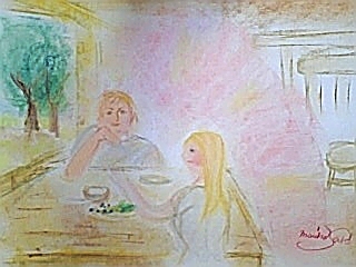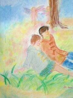 今日のお絵かきと お話し一昨日 見た大昔の時のイメージを 絵にしてみましたイメージの世界。。私は 少女のような女性で 湖のそばの家に住んでるの愛する人と一緒に住んでる絵だと見たままを表現うまく出来ないけど イメージで木で出来た家に住んでる 質素だけど いい家木のテーブルの前には 愛する人が座ってて 頬づえをつきながら 私の顔をにこにこしながら見てるのその顔は 今 愛する人と同じ面影私は 嬉しくて 幸せで 嬉しくて 幸せ食事も楽しいよおいしいって食べてくれるから窓からは 湖や木々が見えるのけれど けれど 愛する人はいなくなってどうしてか分からないけど いなくなって私は 何が何か分からなくなってしまったよどうしていなくなったんだろう何があったんだろうそれとも私を嫌いになったの?違う人のところに行っちゃったの?私のこと忘れたの?どうして帰ってこないの?いないよいないよさみしい さみしい さみしい さみしいいなくならないで いなくならないでけれど 私にも そのあと家族が出来たよ優しい家族であいして愛されたよそして80歳まで生きてたのかわいい 子供や孫 夫に看取られて しんでいった心に中には ずっと 愛する人が住んでいたずっと 心の中に愛する人がいた忘れようとしても出来なかった辛かった自分は裁かれると思ったでも でも体を抜けて あったかいあったかい世界に還っていくと「よくやったね 」って かみさまが そう言ってくれた「よくやったね 辛かったね いいんだよ いいんだよ愛してもいいんだよ ずっと愛してもいいんだよ忘れなくてもよかったんだよよくやったね」ってかみさまが包んでくれた愛する人が 愛する人が待っていてくれた「おかえり」 って私 分かったそうかって離れることなんてないんだってしたくても出来ないんだってだって愛し合ってるもの愛なんだものだから怖がらなくてもよかったんだねまた会うからちゃんとまた会って 愛さずにはおれないから同じもので出来てるからみんなそうだけどみんなそうだけどみんな なくなることはないんだってずっとずっと永遠に愛しあって愛して愛だから愛してる