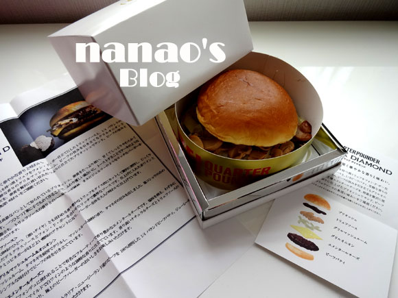 みなさん、買いましたか??私は今週も先週に引き続きマックの高額ハンバーガー買ってみました今週の【ブラックダイヤモンド】おいしい~~!!先週のパインとベーコンの【ゴールドリング】よりおいしい今回はソテーした玉ねぎとマッシュルームが入っててなんといっても黒トリュフが入ったソースがうまいぃ~~もっと食べたい美味しさでした!甘めのパンも美味しかった!!ま、1000円はやっぱり少し高いかなぁって正直思うけど。。。やっぱりパティ(お肉)がもう少し厚みがあってジューシーなら1000円でも全く問題なしなんだけど。。。ま、それでもいつものマックとは全然違う美味しさが味わえるので買ってよかった!ただ、最後の【ルビースパーク】はあんまりそそられないなぁチョリソーが入ってるらしい。。。う~ん、でもここまできたら全部食べてみたい気もするしとにかくネーミングがいいですよね~来週もなんだかんだ買っちゃうでしょう【おもしろかわいいマックグッズ♪】 【メンズマックTシャツ♪】 今日もご訪問ありがとうございました♪ブログ村のランキングに参加しています!見たよ!のかわりにポチっと応援お願いします♪励みになります!ありがとうございます♪(私は4位~7位にいまーす♪)ゆっくり日記読んでってください~~~♪お気に入りブログに登録しちゃお~!【nanao's favorite】 温泉でリフレッシュしませんか?いやされます♪好きな人と行きたい口コミ4.5以上の宿♪↓↓↓こちらもポチッと応援できたらお願いします♪ ありがとうございます!