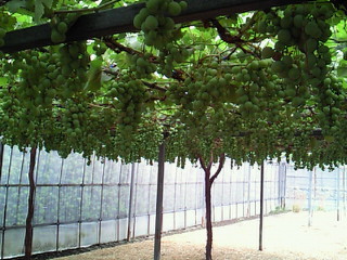 はたけみせてもらいました^-^すげーでかい瓢箪→よめるか?!ひょうたん大量のブドウ!キモスなすびのはなもきれいだったぉ♪マジむらさきなんや!!