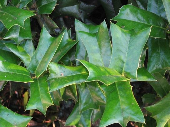 ♪ 腹立ちの一歩手前で柊は柳の陰でおし黙ってる 柊のようにとんがって生きている。 どうしたって柳の様には生きられない。 腹の立つ事も多い毎日の中で、齢を重ねてきたおかげでその一歩手前で踏みとどまっている。チャイニーズホリー チャイニーズホリーはモチノキ科で、ヒイラギはモクセイ科の植物。 クリスマスのリースに使うのはこの西洋柊のチャイニーズホリーであって、日本にある柊ではないんですね。 それにしても、「チャイニーズホリー」は個性的だ。見れば見るほど葉っぱは面白い形をしている。何ゆえにこんな形をしているのか、興味が湧いてきます。 最近、ちょいと失語症気味で、黙然として刺にもあまり生彩がない。そんな自分を励ますように・・・・ 雌雄異株で雌株にしか果実はならないが、単為結果(雌木が受精しなくても結実する)なので、雄木がなくても実がつくという。 おまえ、偉いじゃないか。「日歌」が千首を超えたのを機に、「游歌」とタイトルを変えて、2009年2月中旬より再スタートすることにしました。★ 「ジグソーパズル」 自作短歌百選
