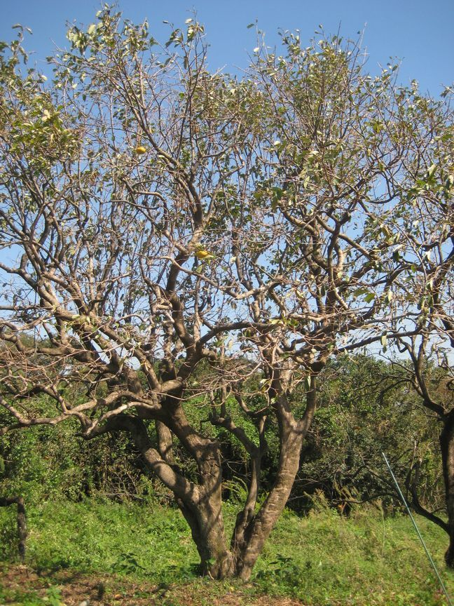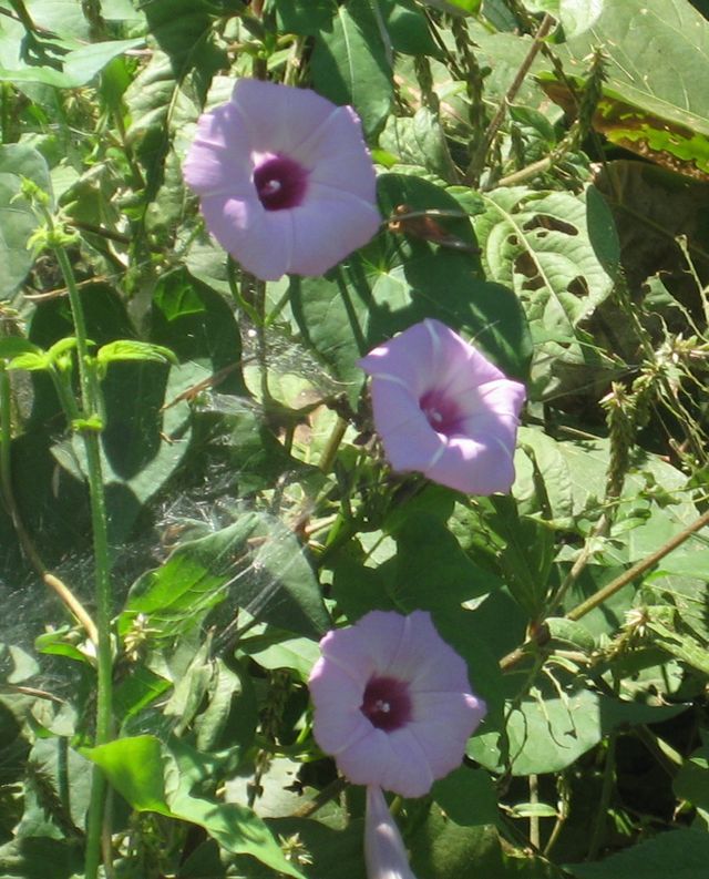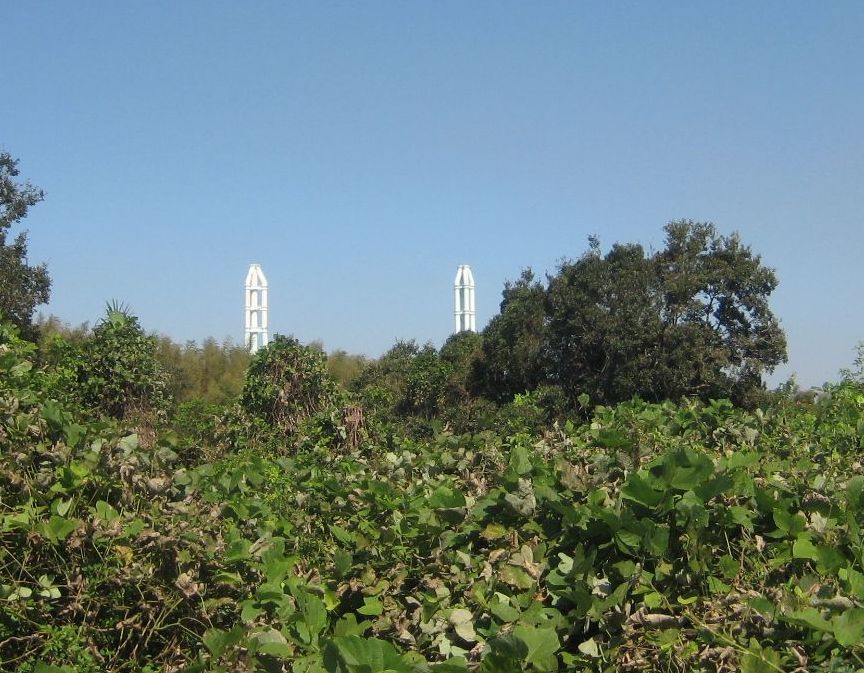 葛が繁茂した荒れ地の向うに中電の火力発電所の煙突が見える。