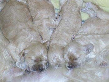 歳を取った証拠!今日になって、内股が痛い・・・・昨日の長時間無理な姿勢の後遺症か・・・歳には勝てない・・・一方ララは、昨日より更にママぶり発揮子供を6匹抱え眠っております。幸せそうな仔犬たち。。。。私も入れてくれー。。。。入れないか。。。(-_-;)明日画像アップいたします。。。。おやすみなさい