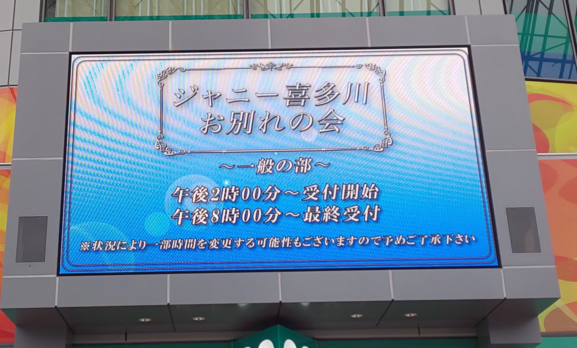 朝からバスで向かい ドームには13:20頃 に着きましたが絶対並んでると 思っていったら 全然 並んでなくて え~と思ったら 13:30に 並び始めて 22ゲート前に いたので 即 並び まあまあ 前の方で良かった (早く帰りたかったから) ものすごい人数は 想定内でしたからね! ドーム内では 撮影禁止 なんで ありませんがもう みなさん 撮りまくりでした・・あ~こういう事が 良くないんだけどね・・・テレビで 絶対 見せてくれると 思ってたので撮りませんでした しかし 夜とか 今朝のワイドショーみて 関係者と一般 全然 見せ方 違うじゃん・・映像もそうでしたが 分けてたんだ・・一般では ライブ映像が 流れてたんですけど今 事務所 所属してない人は カットか 引き映像ひどかったのは 男闘呼組かな・・ あれっ!?岡本君しか 映ってない・・そういった中 おや?と思ったのが翼君のアップは 流れて ひょっとしてこのプロデュース タッキーでは? もう ジャニーさんに携わってた事なんで そこは テレビで 流すわけでもないのだから 普通にして 欲しかったな・・・ジャニーさんが いなかったら フォーリーブスにも逢えなかったし 夢も持たなかったと思う半世紀 ずっと ジャニーズと共に 生きてました自分でも びっくり こんな風になるとはでも 後悔は 無いですよ 楽しかったし最後の時が来たとしても 葬儀では 「君のこの歌を」流してほしいくらいですから!出口で 頂いた カードです 記念になりましたね