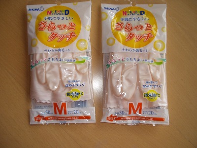 ゴム手袋は、ある程度消耗品とは言え、使い心地の良いもののほうが、作業もはかどり、気分も良いものです今までのは、わたしの経験では、 薄くて、手で作業しているのに近いけど すぐに破れたり、穴が開きそうな感じ もしくは、それなりに丈夫だけど 作業しづらい とこの二手に分かれていましたが、この「ナイスハンドさらっとタッチ」は、 素手で、掃除している感覚に近いけど、 丈夫で、安心してしっかりと使用できるといった感じです。ショーワグローブ株式会社さんの商品。内側もはめていて気持ちがいいし、外側もしっかり汚れをはじくようです。ホームセンターでは、大掃除の季節だからか入り口のほうで、陳列されていましたこらから、大掃除 がんばります。手袋のショーワファンサイト応援中