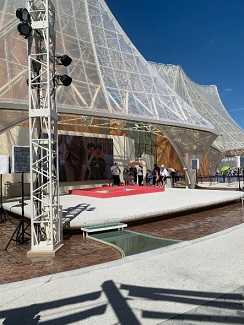 パビリオンの前にあり、どなたでもご覧いただけます。