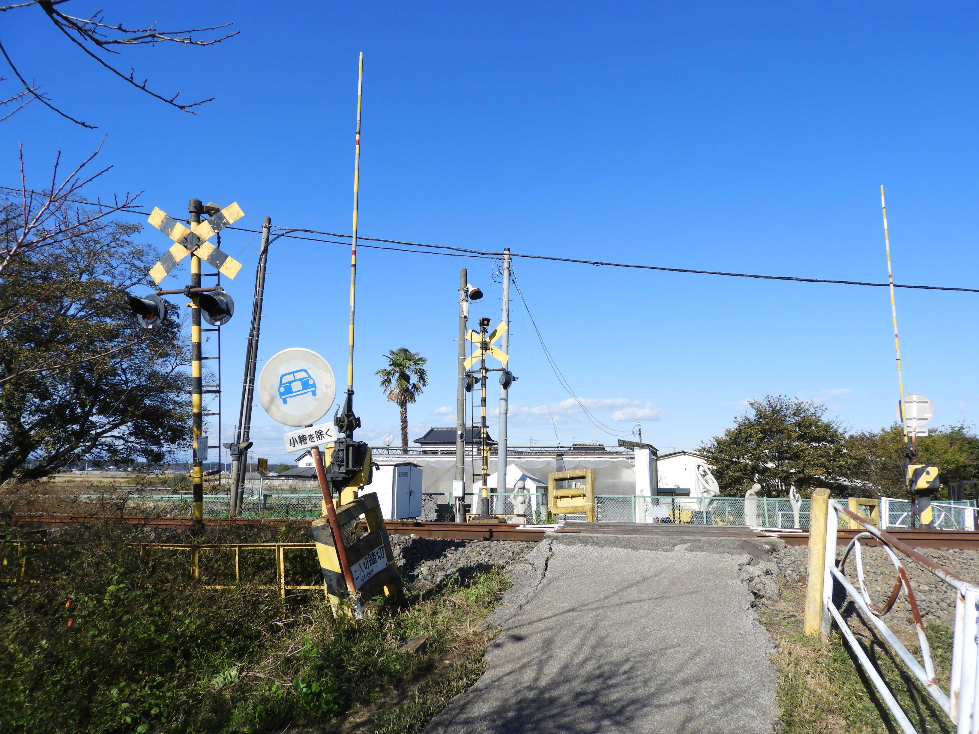 五行川橋梁のすぐわきにある小さな踏切で、自動車の通行はできません。踏切名の…