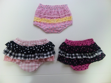 やっとおリボン試作することができました私のパンプスについていたおリボンのデザインを参考に優輝ママさんの配色を参考に作ってみましたラインストーン付きにしてみましたちょっと大きめサイズちょんまげ風につけてもかわいい試作品ということもあり試行錯誤しながら作ったんですがいろいろ改善が必要そうまずおリボン左右対称じゃないところから(笑)あとヘアクリップのつけ心地がイマイチなので優輝ママさん使用のヘアクリップが良かったのでそちらに変更しようと思います そしてずっと作ってみたかったフリフリブルマを試作~とりあえず試作ということで家にある有り合わせの布と糸で制作なので色合いが微妙ですがこちらも改善点多々あり大きめに作ったほうが長く着せられると思いましたがちょっと大き過ぎてぶかっとしちゃったフリル部分はもっと長さとボリュームが欲しかったな・・・レースはつける予定じゃなかったんですが茶色の糸が無くてピンクで縫ったら縫い目が目立っちゃったので隠すためにつけましたそしてさすが私だな~と思う大失敗がフリル縫いつけてる時に前側の布も一緒に縫ったしかもフリル2段分ほどいたら縫い目が目立っちゃってまたまたレースで誤魔化し着画~履かせてみるとなんとか形にはなったので次は好きな布を買って作ってみようと思いますtemplate-いなもとtemplate-いなもと