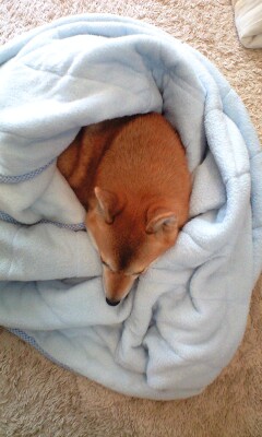最近はこんなくるまり犬が見られるようになりました(笑)