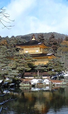 でもそのかわり青空をバックにした雪の金閣寺に行けました。