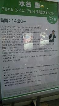 水谷豊さんのアルバム「TIME CAPSULE」このアルバムの発売記念イベントに行って来ました実はまた朝方激しい頭痛に襲われ薬飲んでも治まらず行くの断念しようかと思ったんですが寝てても辛いから「どちらにしても辛いなら行っちゃえ」と。このイベントはミニライブと直筆サイン入りCDジャケットを豊さん本人から貰えるというスペシャルなイベント。ライブ開始は14時~ですが引換券交換は12時半から。なので12時くらいには会場に行く予定だったのですが先に書いたように調子悪くて家出るのが少し遅くなり13時に会場に着きました。ラゾーナ川崎というショッピングモールだったのでイベント自体は誰でも観れるんですよ。だから私が着いた時には既に満員状態(観客1万人だったそうです)どこで整理券を引き換えていいのかわからずウロウロしてしまいましたが無事にGETでも番号が4150番で超ビックリ何とか見えそうな位置を確保して半分背伸びしながら観賞。豊さんのお茶目なトークや右京さんの名セリフを生で聞けたり「カルフォルニア・コネクション」 (熱中時代刑事編主題歌)「やさしさ紙芝居」 (熱中時代教師編2主題歌)「何んて優しい時代」 (豊さん作詞作曲)の3曲を歌ってくれてこれまた味わいがありカッコ良く素敵でしたミニライブ自体は30分弱と短いかったのですがこの後の直筆サイン入りCDジャケット手渡しがかなり時間が掛かったんですよ。ってかこんなに人が集まるなんて、しかも整理券引換えにこんなに来るなんてレコード会社の人も予想してなかったらしいんだよね。でもオリコンのデイリーチャート見てればこれくらいの人数集まるの予想できるだろう<エイ●●●ス100番ごとに呼ばれて並ぶから私なんてまだまだ先。で、この手渡しが見えない場所でやってればどっかお店とかで時間潰したんですがステージ上でやるからずっと見てられたのしかも前に居る人達がどんどん並びに行くのと私の前が結構早く空いたので700番台ぐらいの時には既に私、最前列で豊さんがファンに渡している姿見れたんですよ。自分の番まで約3時間待ってましたが2時間半以上は最前列で豊さんみれてしかも話し声とかも時折聞こえるというこの上ない贅沢な時間でした豊さんの優しい姿を長時間見れて心癒されましたわマジ、一人一人に対する対応が誠実で温かいんですよ。2000人終わった頃かな。この豊さんの直筆サイン入りのカードが無くなっちゃたんですよ。始まる前にスタッフの人が「足りなくなるかも」とは言っていたけどまさか2000枚しか書いてなかったとは・・・・しかも豊さん曰く「2000枚書いて余るかも知れませんってスタッフに言われてたのよ」と。ほんと相変わらず使えねぇ~なぁ~<エイ●なので急遽、握手会に変わりカードはサインが入ってないものを握手後スタッフから頂く形に。予想以上の人で時間が掛かってること、おまけにこの後映画の舞台挨拶があるため時間が無く握手会はかなり速いスピードで行われ(約1名人を投げ飛ばすようにするスタッフが居たり)豊さんとちゃんとお話出来るかな~って心配したけどしっかり私の言った事聞いてくれてそれに応えてサムズアップしてくれたのでもう豊さんから離れてたけど振り返りながら私もサムズアップしたら今度はバイバイ(外人風の指を曲げる仕草)って返してくれて。。。。。何て優しいの 何てカッコ良いのそこにいたのは北野先生でも、あんちゃんでも、チャボでも、本城刑事でも、左文字さんでも、右京さんでもなく素顔の水谷豊さんが、いましたもう素敵過ぎて言葉にならないですよ~イベントが無事終わって、舞台挨拶の時間まで数十分しかないのにちゃんと最後の挨拶までしてくれて(しかも自分の言った事がツボに入ったらしく笑い出すし)最後の最後までサービス精神旺盛の心優しい豊さんでした。何だかんだで6時間近く立ちっぱなしだったけど行って良かった豊さんがライブの時「僕は4曲目から調子が良くなるんですよ」って冗談を言っていましたが絶対、次、4曲目からというか4曲以上唄うライブまたやって欲しいですあとはサインの入ってないカード持ってる人に街であったら「僕、サイン入れますから」って言ったの私は忘れませんよ~どこで偶然会っても良いように(←会わないだろ)毎日持ち歩きます最高の時間をありがとうございました<豊さんイベントの案内版関係者からのお花このステージでライブ&握手会等が行われました。終演後の写真