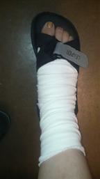 こんな足で仕事に行ってます。靴はけないから父様のビーチサンダルでの通勤しかし世の中バリアフリーが進んだとはいえ、まだまだ足が不便な人には歩きづらい世の中なんだな~と痛感。そんでもってこんな足をさらけ出しても電車で席を譲ってくれる人は皆無です優先席の前に立ってもね。。。だからほんのちょっと優しい声をかけてくれる人がいたりするとすごく嬉しいのです。自分がなってみて初めて気づくことってたくさんあるんだよね~足が治ったら私は決して眠くて身体が疲れていても怪我してる人とかいたら席を譲ろう!困ってる人がいたら知らん振りせず一声かけてあげよう!!そう思いました。自分がされて嫌だったことは人にはしない私もまたちょっとは成長できたかな