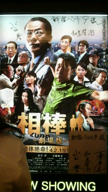相棒―劇場版―観に行ってきました仕事途中でバックれてだって昨日の初日出陣式&舞台挨拶した劇場、会社から徒歩圏内の近さなんだもん。。。やっぱ、まずはここで観ないとと、上映1時間前にネットでチケット購入してダッシュ感想はまた改めて。取り敢えず昨日書かれた豊さん、寺さん、監督のサイン入り画像アップしま~すサイン入りポスターポスターの端に飾られていた色紙