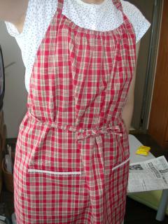母の日用に急いでエプロンを作りました。生地と一緒にエプロンの作り方レシピもついていたのでそれを参考に作りました♪【送料無料】簡単エプロンレシピ付き♪日本製 コットン 平織り 先染めカントリーチェック 全8種[着分販売 130cm] 【手芸同好会-sou】【donpa0508_frshipg】小柄な母なので丈を20cm短くして、ポケット口にはレースを付けてみました。かわいくなったよんエプロンはいくつあっても邪魔にならないので、友達にもプレゼントしちゃおうかな~その前に私の分も欲しくなったので、早速作ろうっと^^
