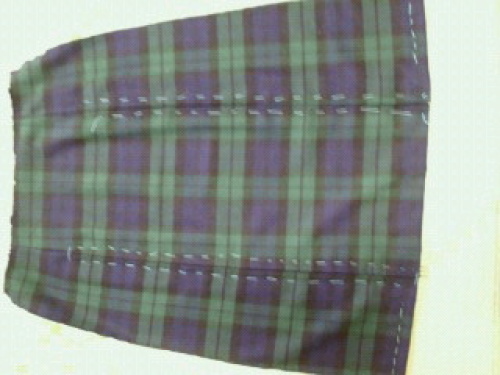 「毎日着たいスカート」ブティック社の本をから見返し始末のプリーツスカート(裏布つき)を作成中です。生地はブラックウォッチのウールフラノです。ちゃんとファスナー付きのスカートを作るのはこれでまだ3枚目です。。^^まだまだ本とにらめっこしてます。元の本だけでは説明が分かりにくいので、他の本も見てます。今日は、前スカートのプリーツ2本、後ろスカートのプリーツ2本を作りました。なかなか・・時間がかかります。丁寧に、丁寧にと心がけました。表ひだ山をアイロンで折って、そのあと陰ひだ山もアイロンで折り、陰ひだ山の端にミシンをかけました。ひだをたたむとき、チェック柄にそってたたんだり、横のラインにあわせたりと、ずいぶん柄に助けられました。^^ プリーツができた後、しつけでプリーツを固定してます ↓明日は裏布を縫います。クリスマスやら年賀状の準備を。。気にしながら。。スカートを年内に仕上げたいな~