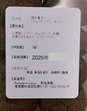 原材料は小麦粉、バター、チョコチップ、砂糖、卵黄、ココアパウダーです。